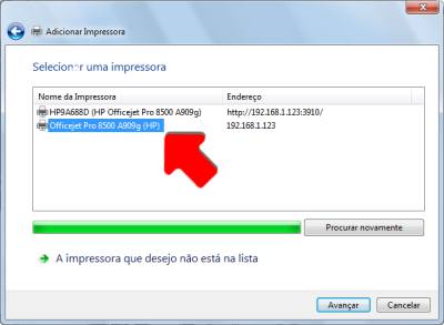 5. A impressora é localizada. Avance, a fim de incluí-la entre os dispositivos acessíveis ao PC.